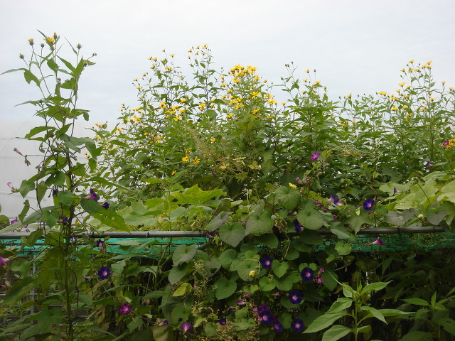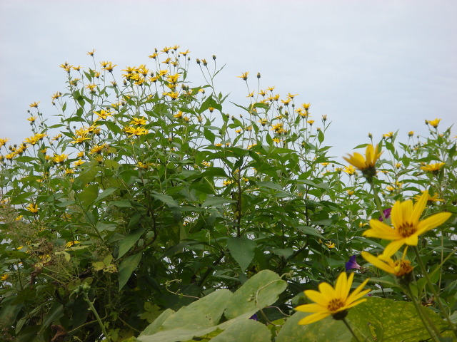 나팔꽃이랑 어울어진 돼지감자, 키가 크죠?