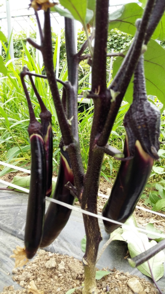 밭에 가지가 주렁주렁 열렸답니다.