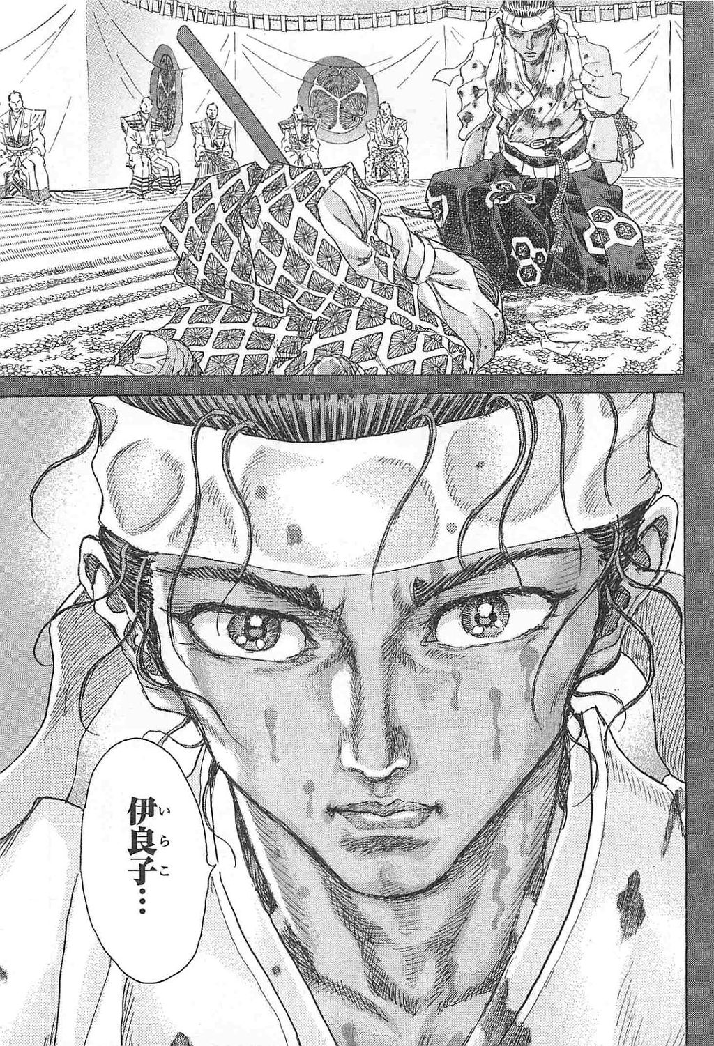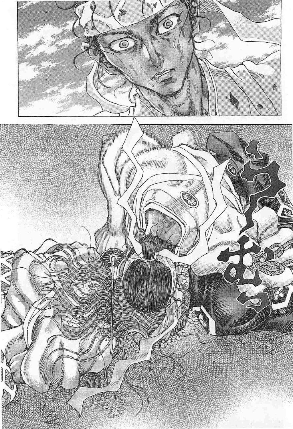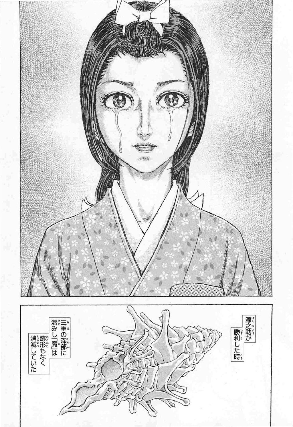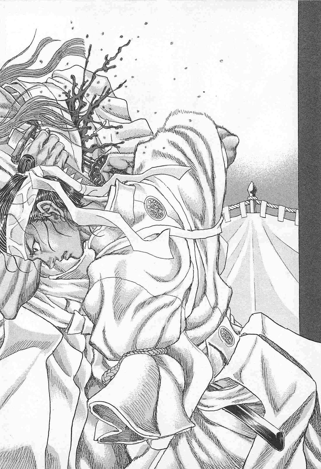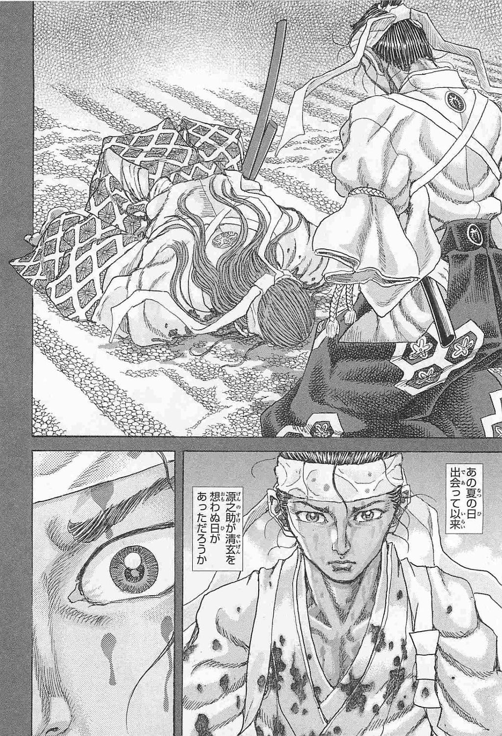 지시를 받고 세이겐의 목을 자르기 시작하는 겐노스케...