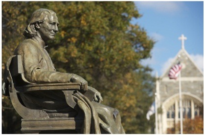 학교의 설립자 존 캐럴의 동상입니다.