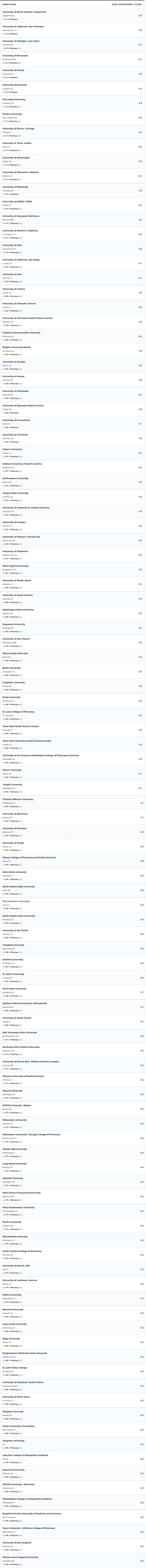 MCPHS를 포함한 19개의 미국약대가 상위 70위에 위치하고 있습니다.