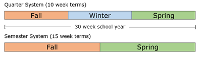 보통 Fall, Winter, Spring의 학기들은 Quarter보다