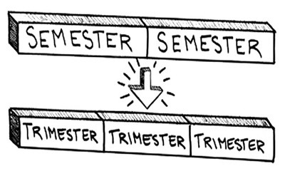 Trimester의 학기는 Quarter 학기 시스템의 학사 일정과 비슷하게 운영되지만
