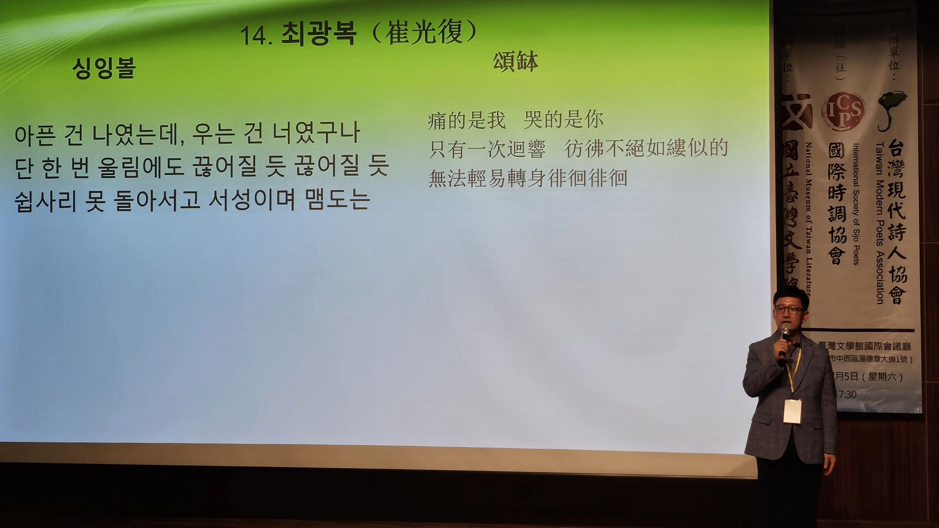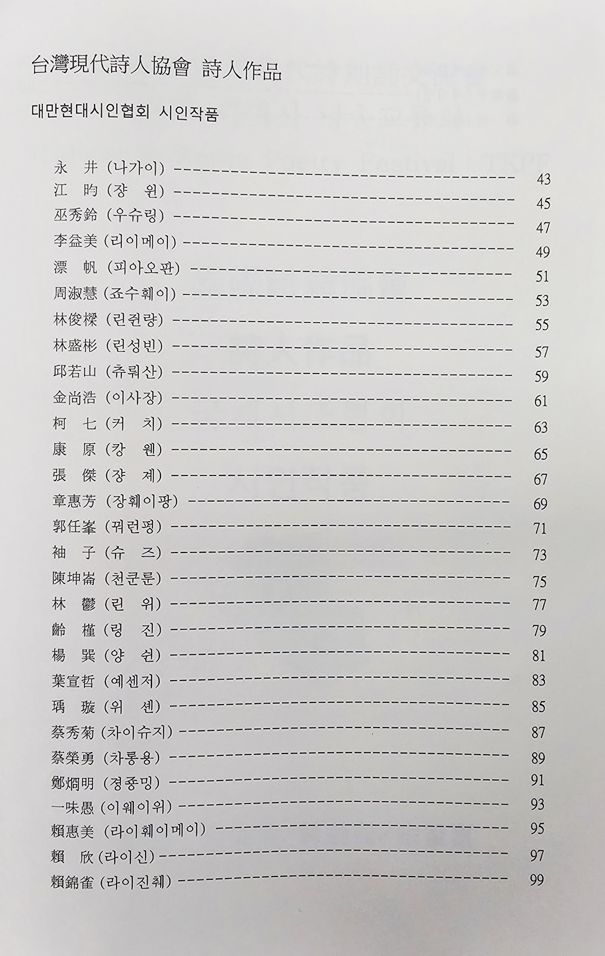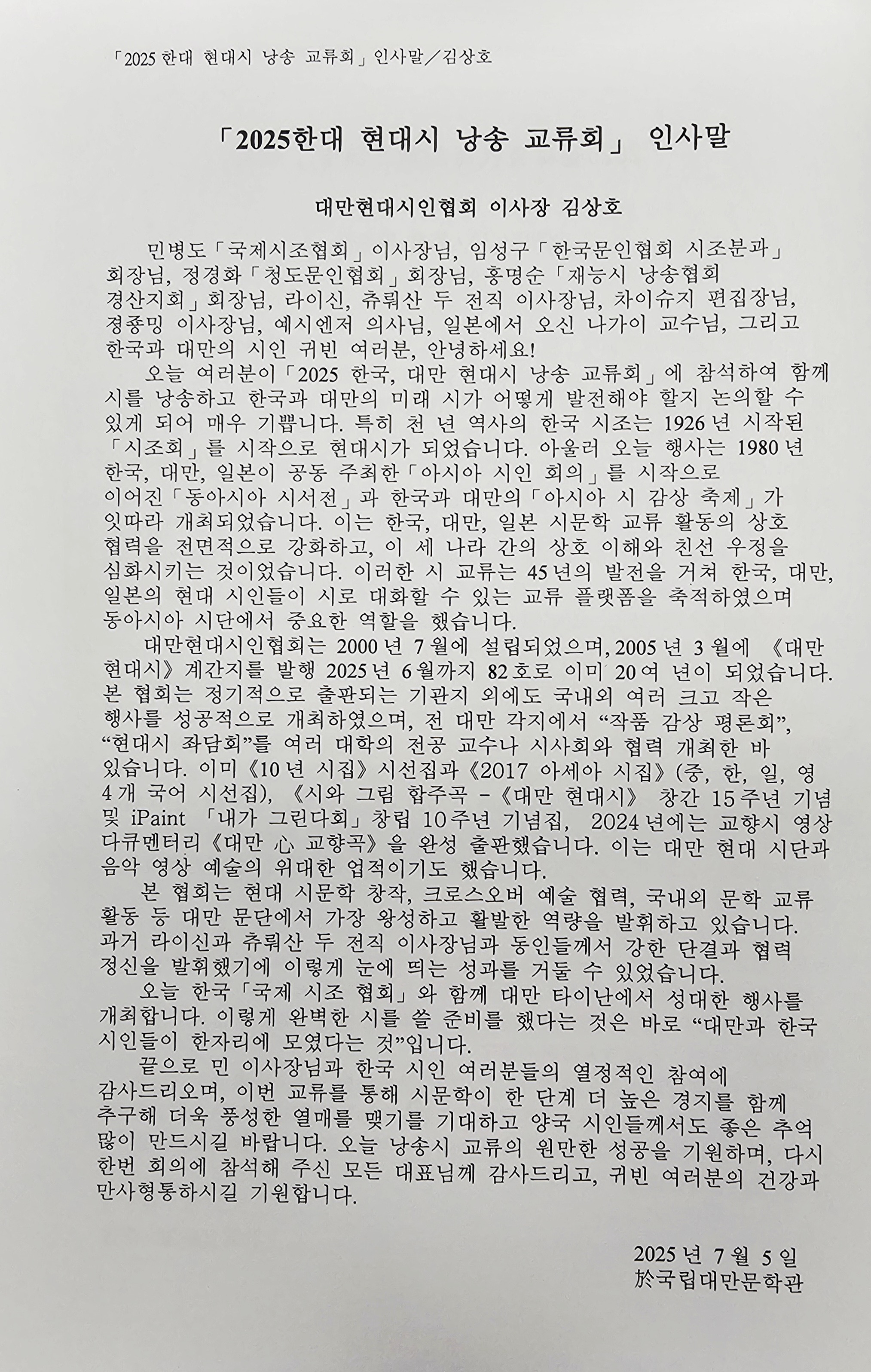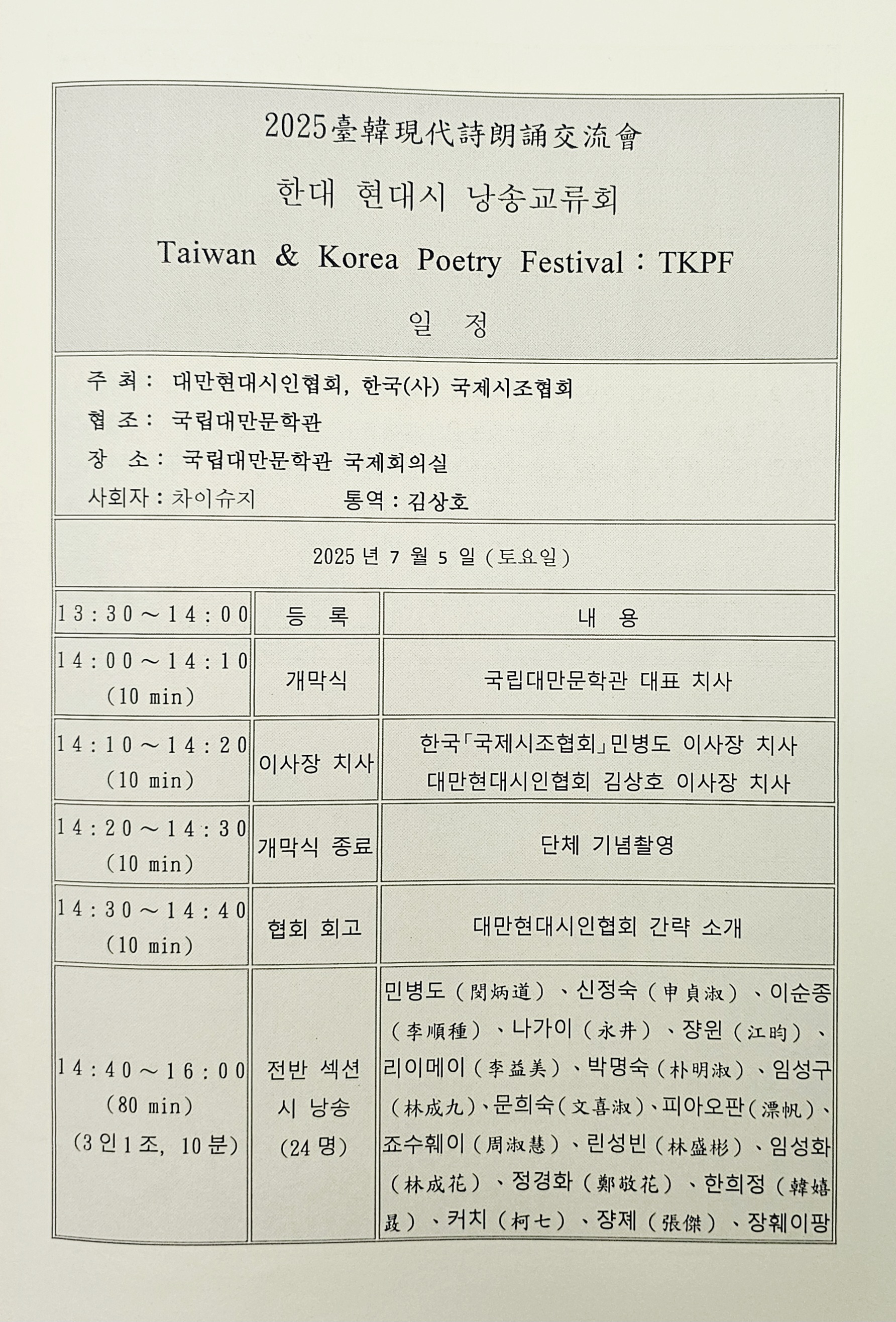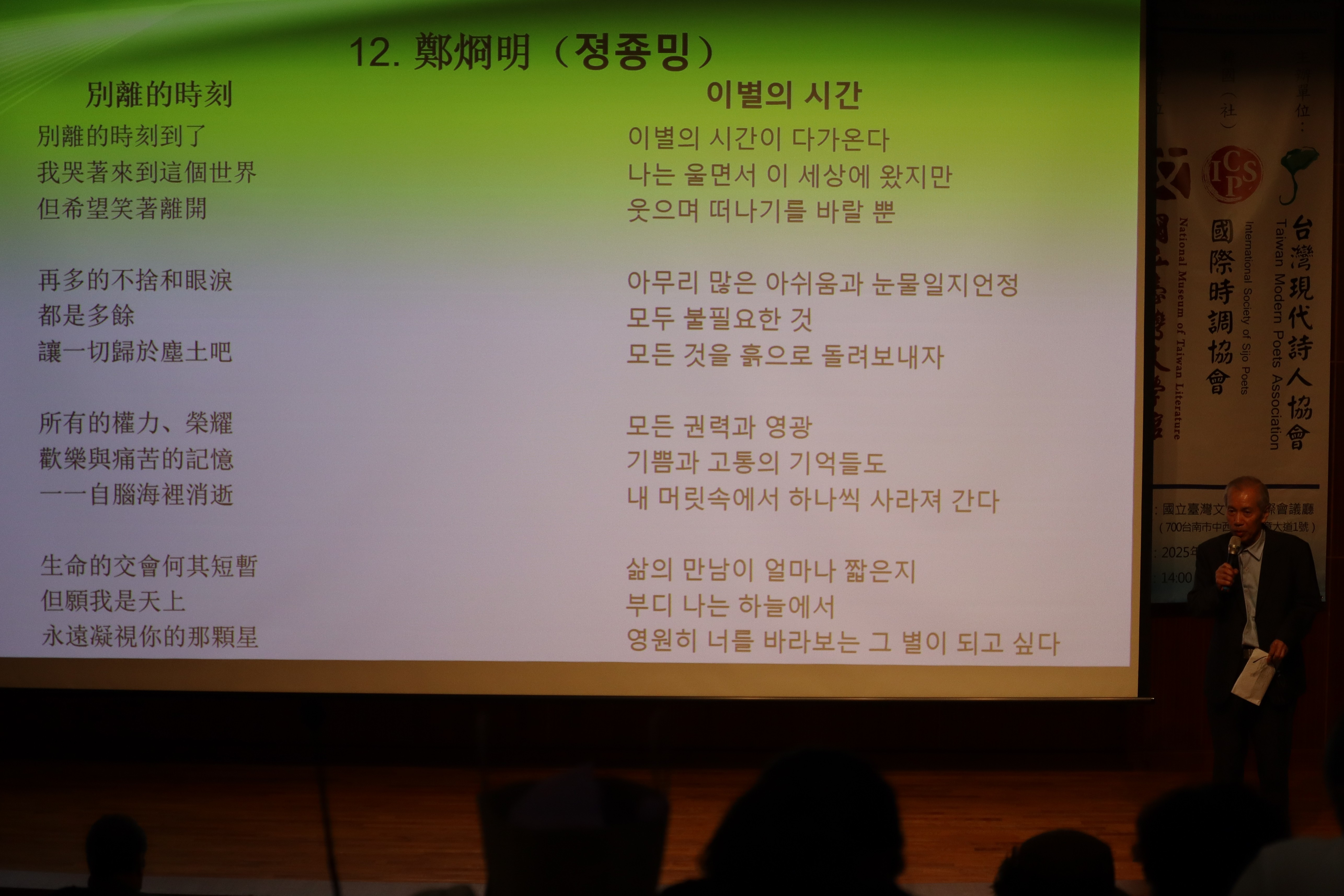 2025 한국·대만 시낭송 교류회 2 - 국립대만문학관 (2025. 7. 5.) 작성자최광복|작성시간25.07.13|조회수25 목록 댓글 0 글자크기 작게가 글자크기 크게가 2025 한국·대만 시낭송 교류회 2 - 국립대만문학관 (2025. 7. 5.) 다음검색 현재 게시글 추가 기능 열기 북마크 공유하기 신고 센터로 신고 댓글 댓글 0 댓글쓰기 댓글 리스트