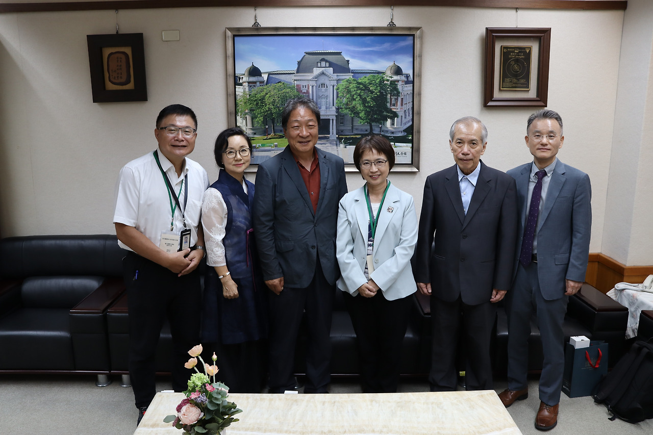 우측으로 부터 김상호(대만 현대시인협회 이사장), 졍죵밍(문학대만 발행인), 첸잉팡(국립대만문학관 관장), 민병도(국제시조협회 이사장), 정경화(청도문협 회장), 장신길(국립대만문학관 부연구원)