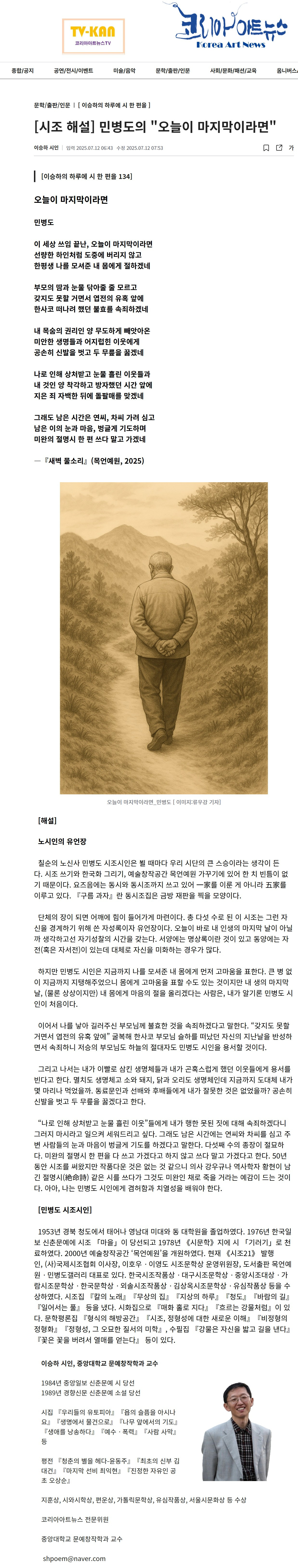 [시조 해설] 민병도의 "오늘이 마지막이라면"