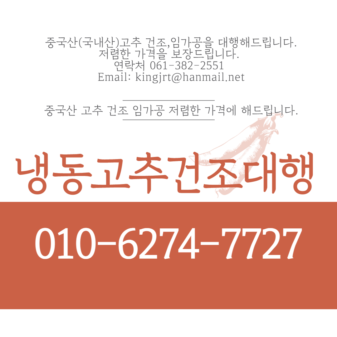 중국산 고추 건조 임가공 해드립니다. 작성자코끼리|작성시간21.11.02|조회수21 목록 댓글 0 글자크기 작게가 글자크기 크게가 다음검색 현재 게시글 추가 기능 열기 북마크 공유하기 신고 센터로 신고 댓글 댓글 0 댓글쓰기 답글쓰기 댓글 리스트