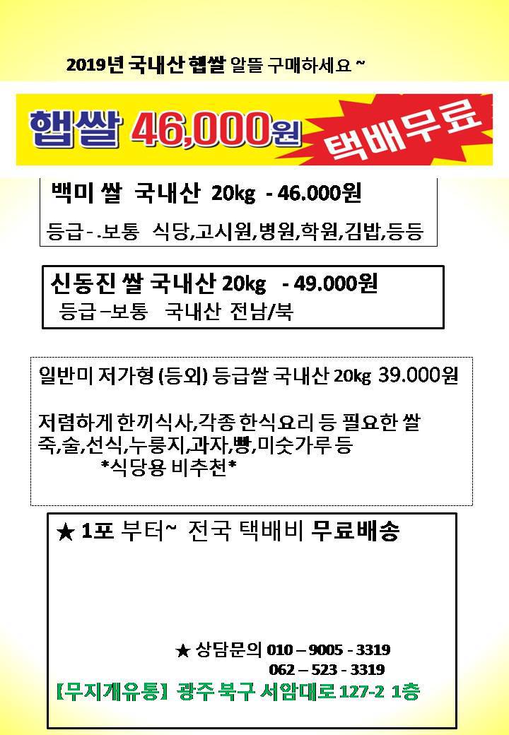 전남 전북쌀 46000원 1포부터 택배무료 작성자멀티무지개|작성시간19.10.11|조회수15 목록 댓글 1 글자크기 작게가 글자크기 크게가 다음검색 현재 게시글 추가 기능 열기 북마크 공유하기 신고 센터로 신고 댓글 댓글 1 댓글쓰기 답글쓰기 댓글 리스트 작성자멀티무지개 작성자 본인 여부 작성자 | 작성시간 19.10.11 쌀 18년 산 44000원 배송무료 댓글 전체보기