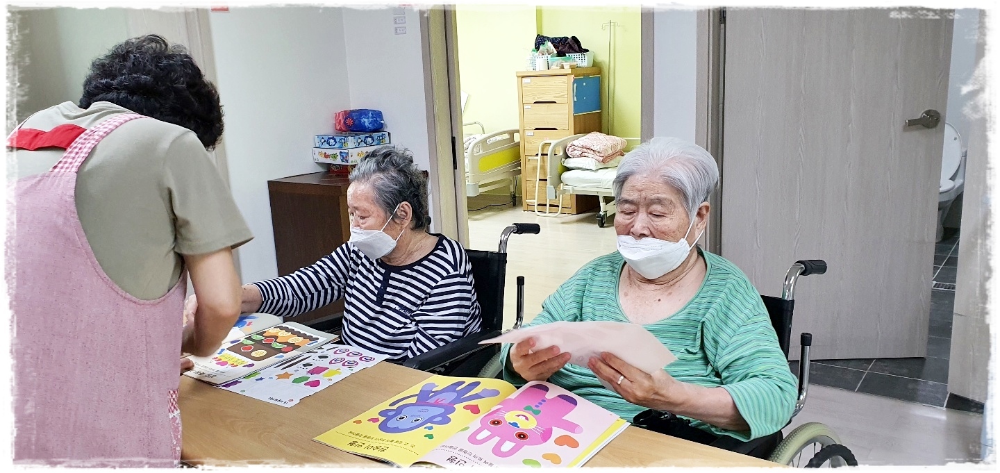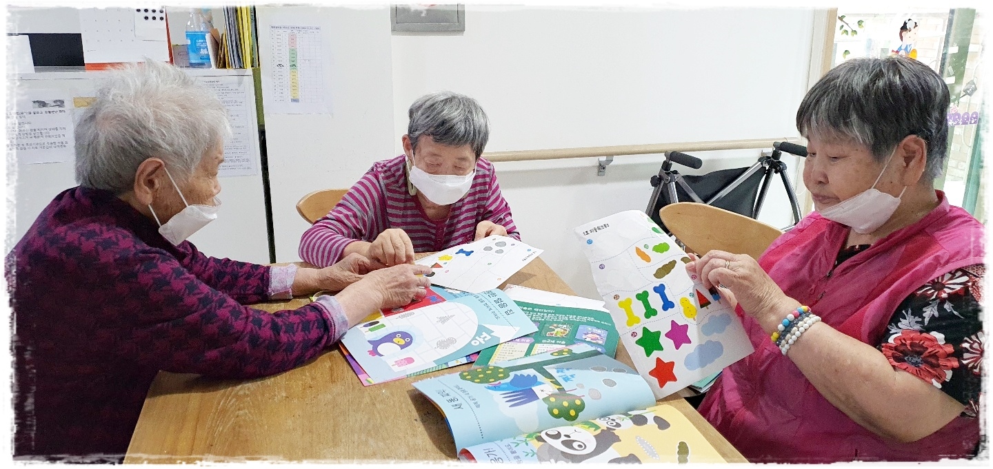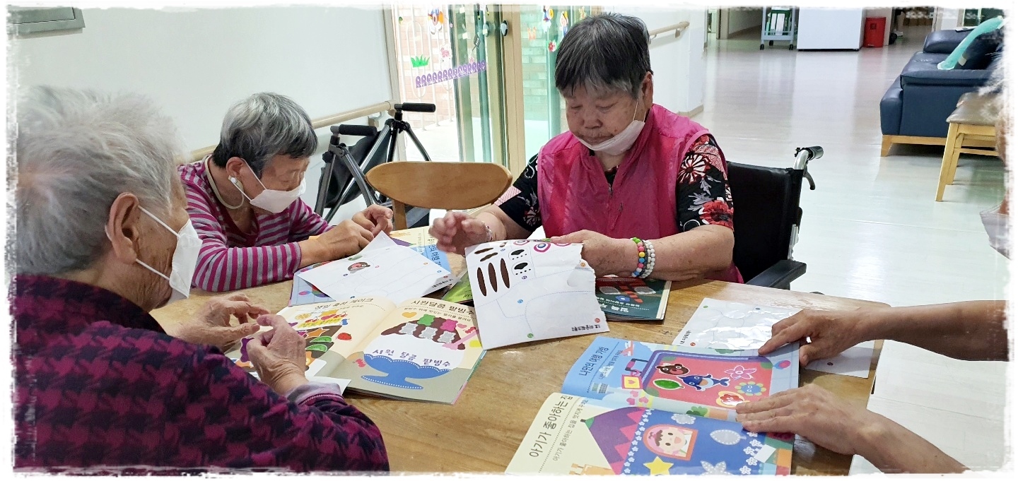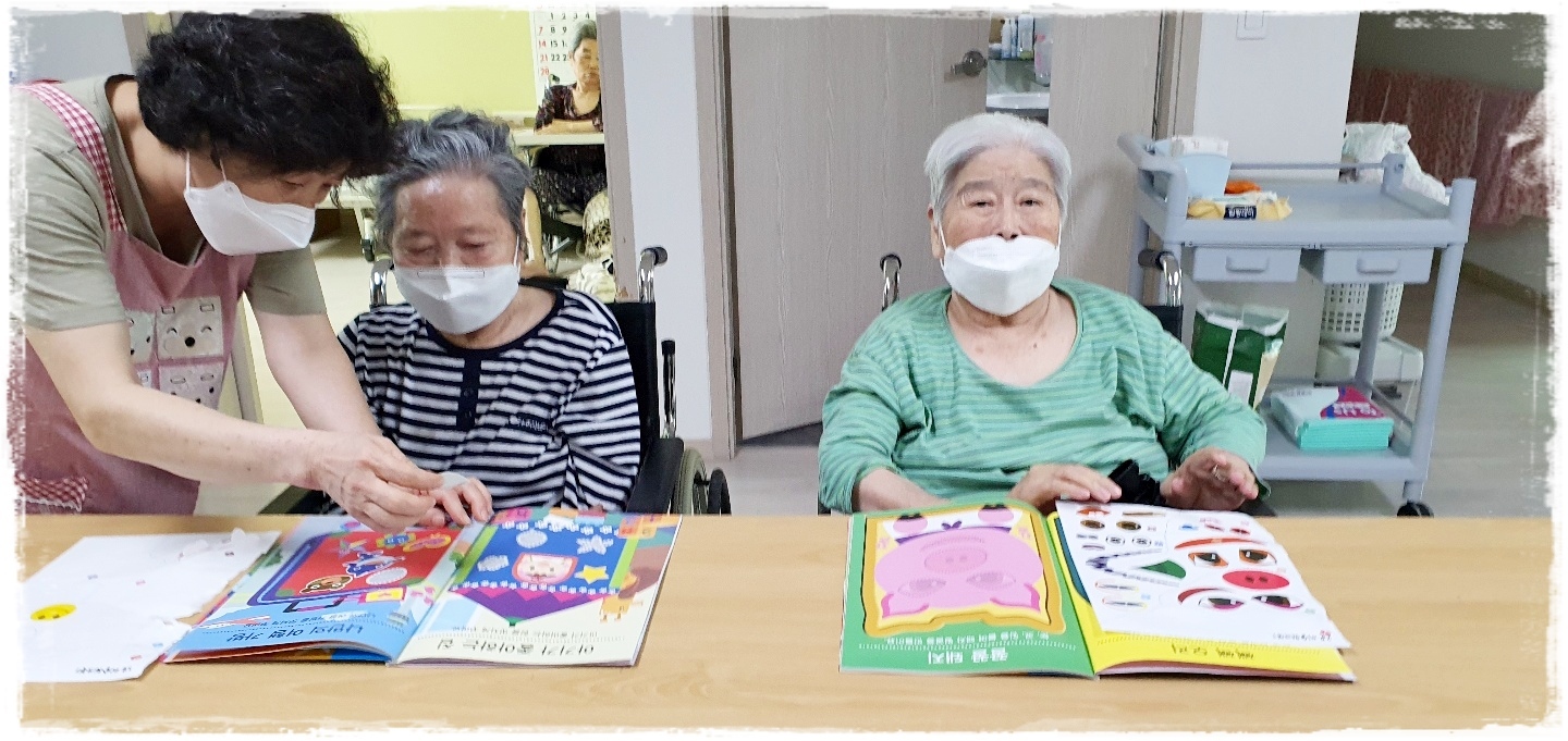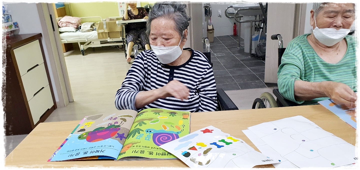 어르신들께서 스티커 떼어네는 작업을 조금 힘들어 하셨지만 책 한권을 완성하시면서 뿌듯해 하시고