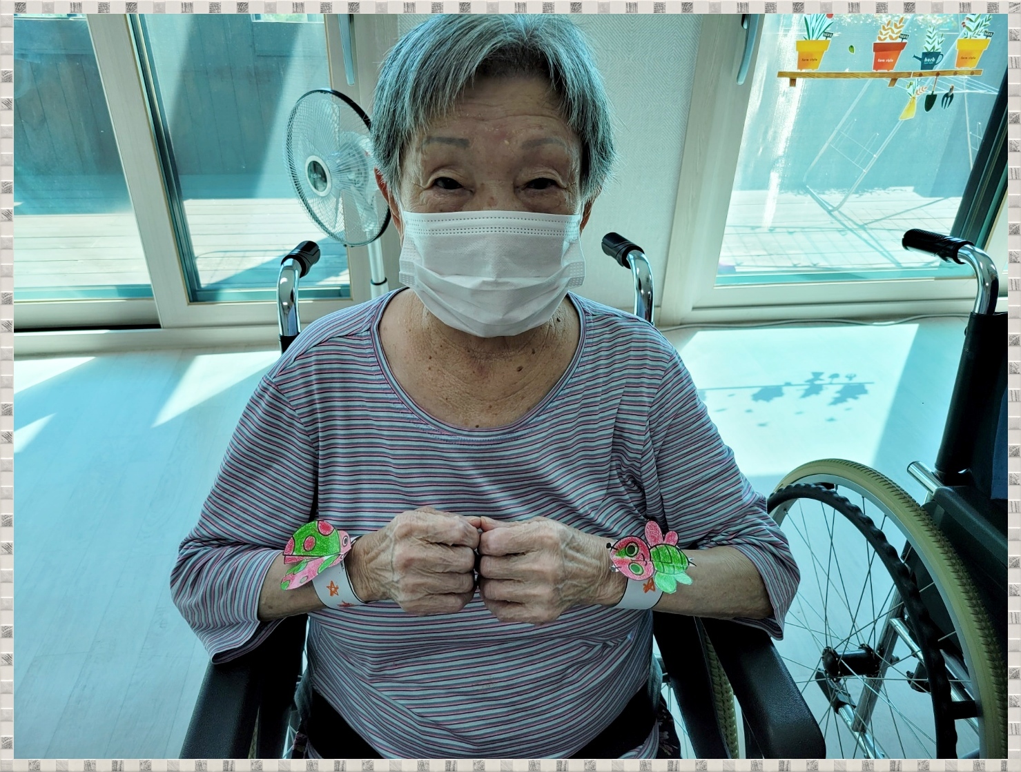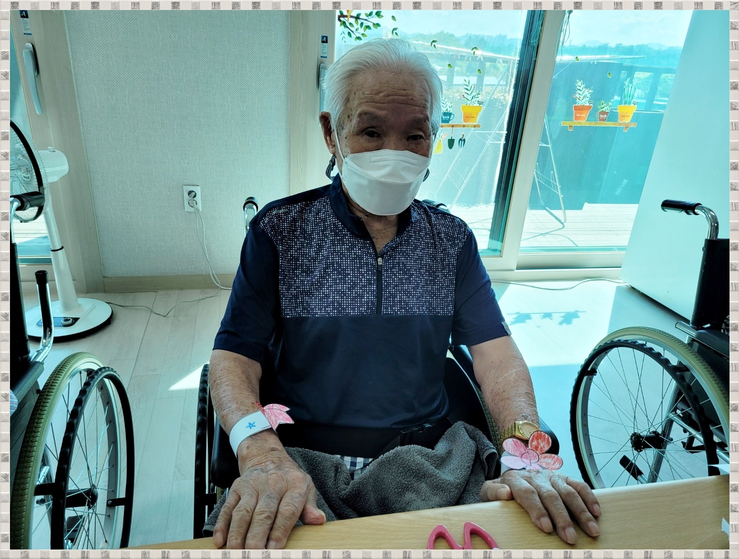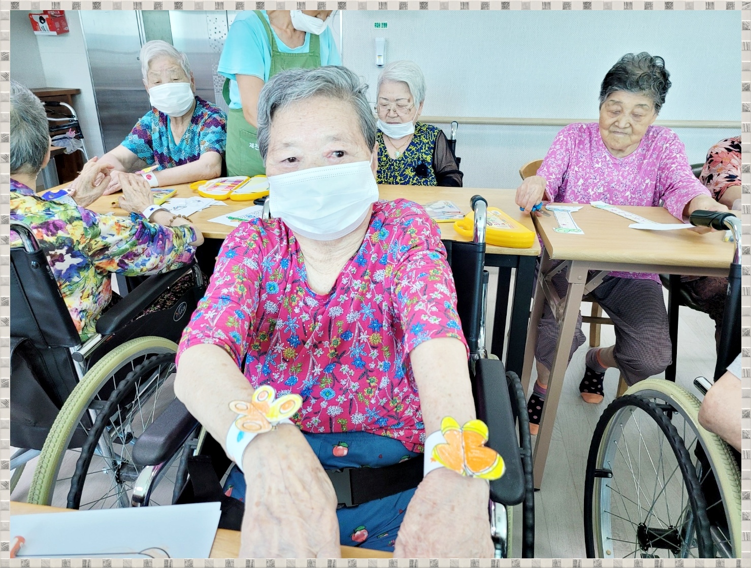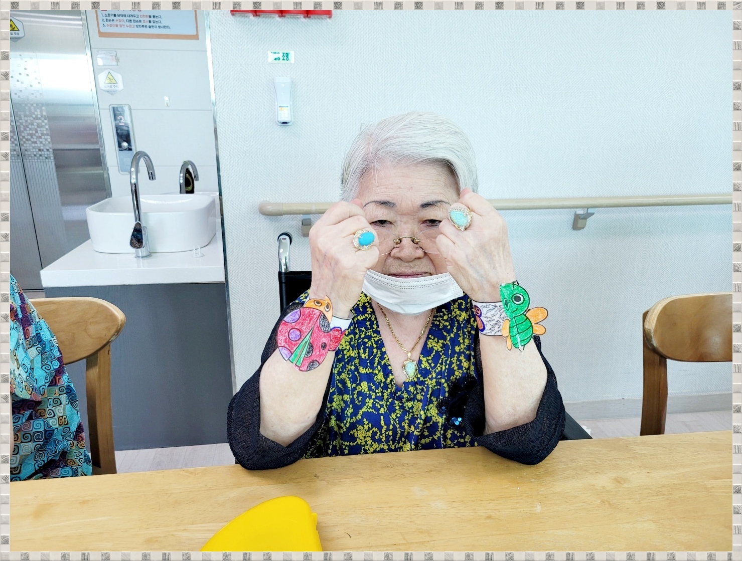 남*예 어르신께서는 " 예쁜 나비가 내 손목에 두마리가 앉았네~~" 라고 하시며 완성작품 팔찌를 보시며 만족해 하시는 모습을