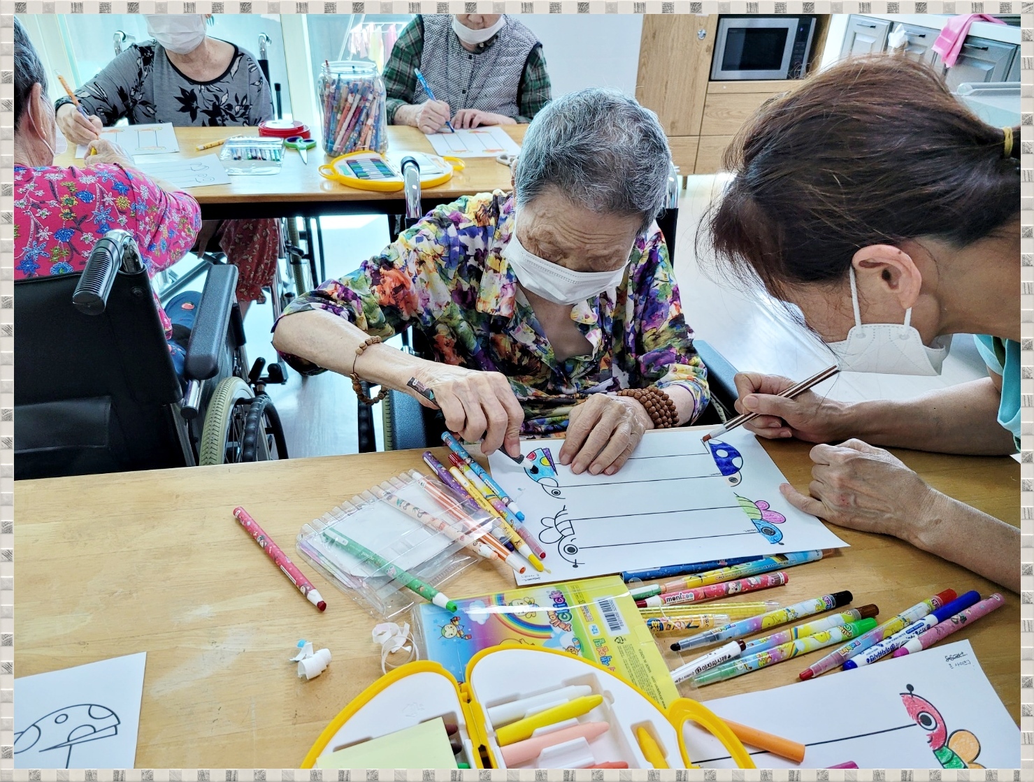 김*남 어르신께서는 선생님과 즐거운 이야기를 하시며 장수풍뎅이를 알록달록한 색깔로 꾸미시는 모습을 보이셨습니다~