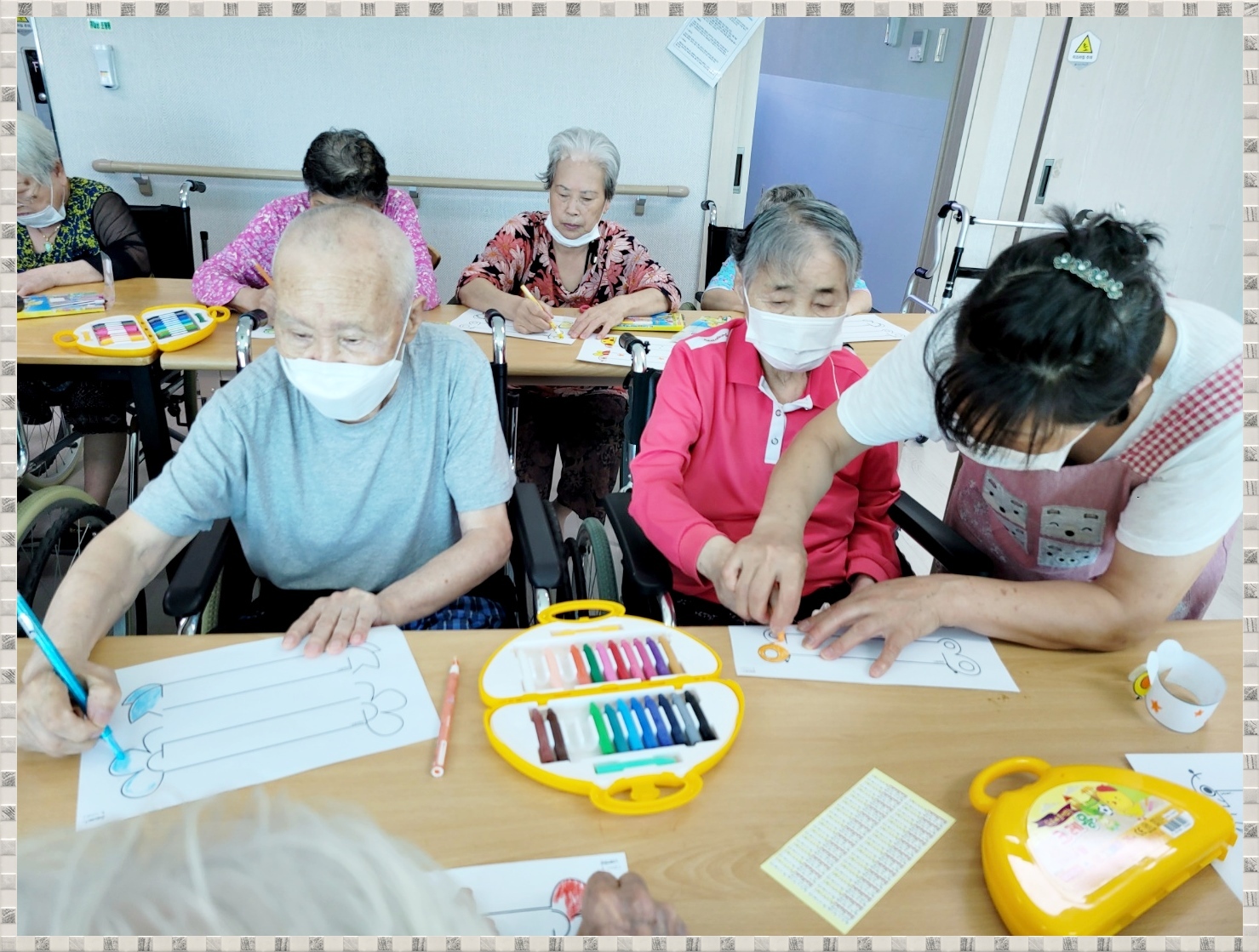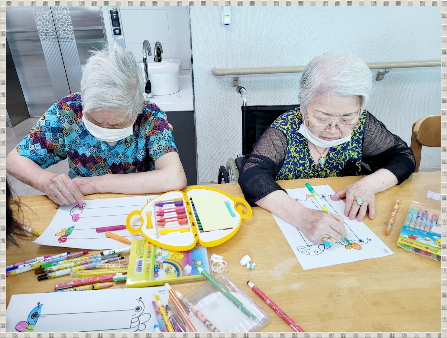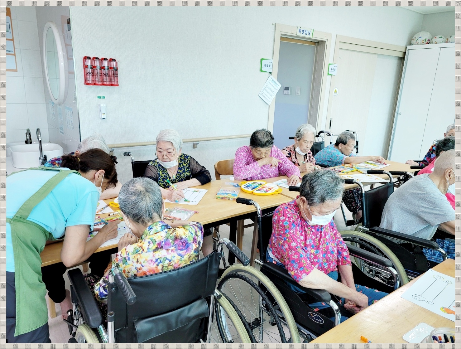 남*예 어르신께서는 " 역시 나비는 노란색나비가 화려한것 같아~~" 하시며 노란색과 주황색으로 색칠하시는 모습을 보이셨습