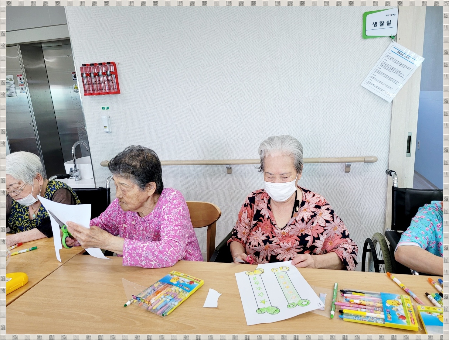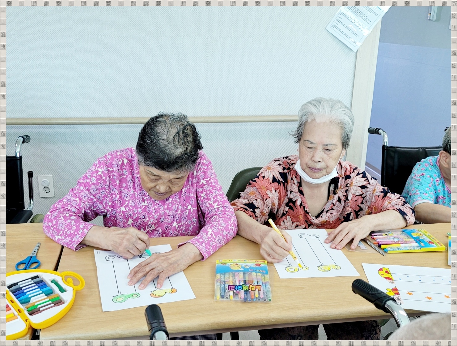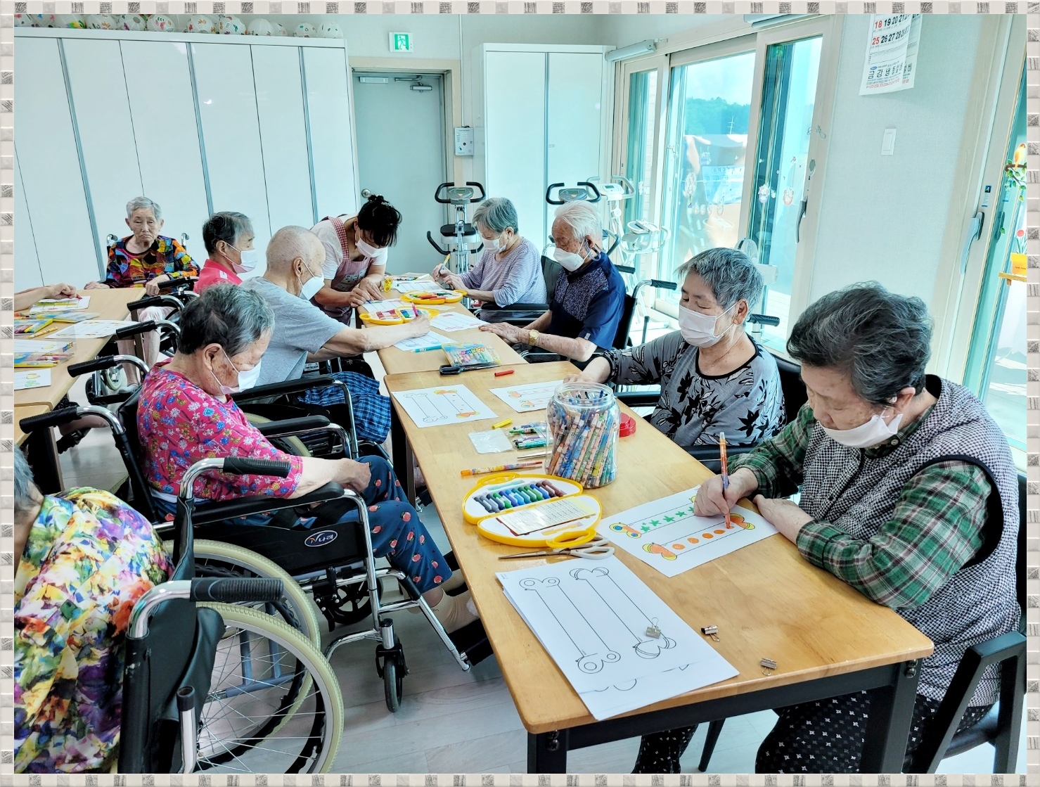 장*옥 어르신께서는 색칠을 하시면서 " 이것이 어떻게 팔찌가 만들어져요~~? " 하시며 궁금한 부분을 선생님께 질문을 하시는 모습을 보이셨습니다~