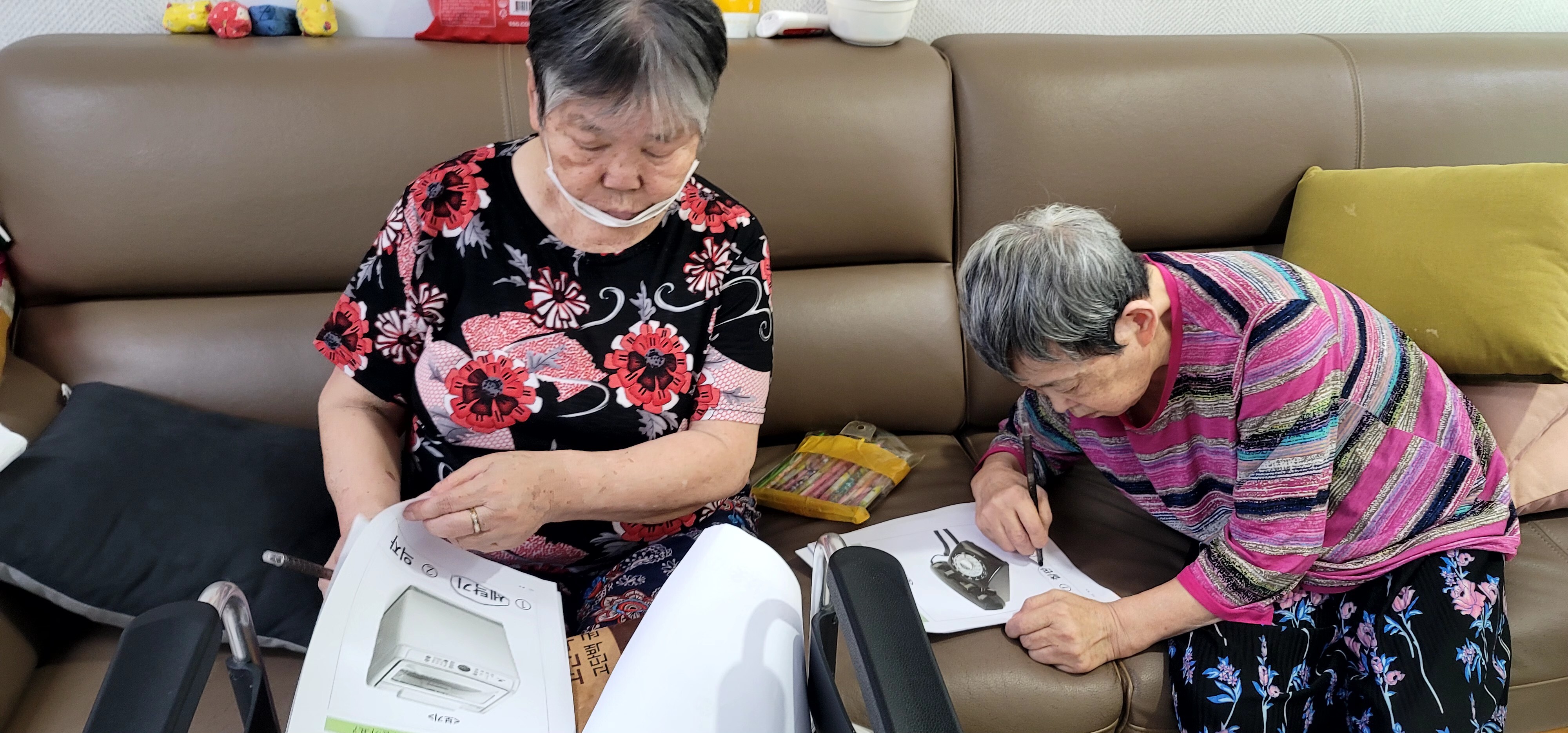 사물이름을 모르면 가르쳐 주고 글자를 모르면 아는 어르신께서 가르쳐 주고~`