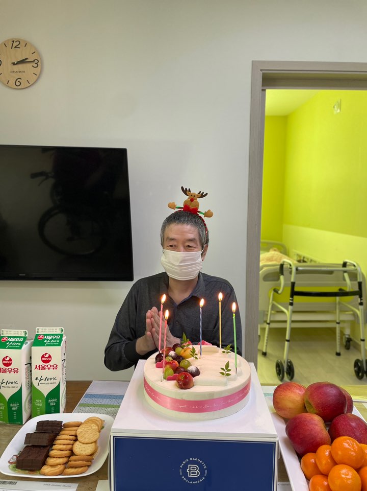 거리마다 캐럴이 가득한 크리스마스이브에 생신을 맞은 차*천 어르신을 위해 함께 모여 생신 파티를 즐겼습니다😃