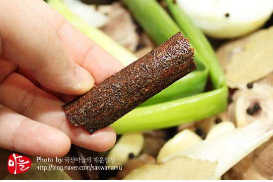 계피 1조각, 양파 반개, 통후추 반스푼. (잔은 소주잔, 스푼은 밥수저 기준. )