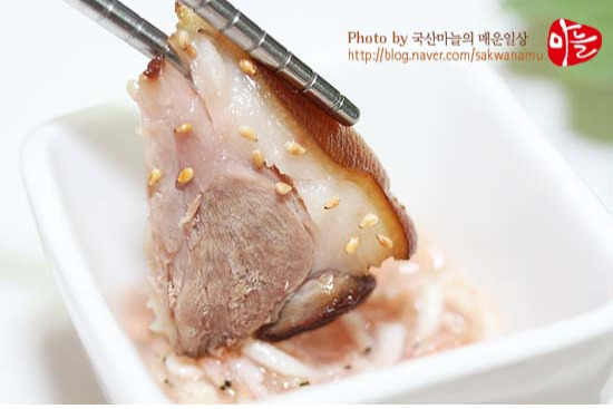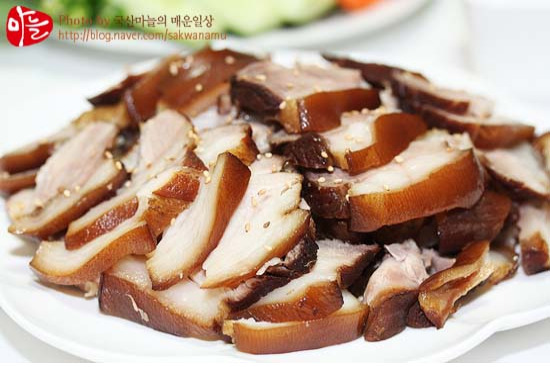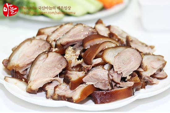 저지방부위인 돼지 앞다리살을 양념에 푹 고아서 담백한 그 맛또한 일품인데