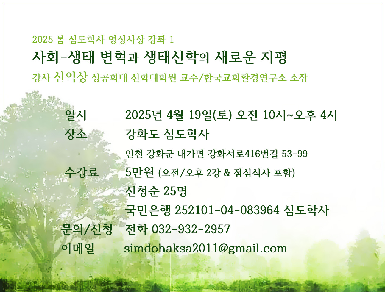 심도학사도 2025년 봄 영성사상 강좌를 재개합니다.