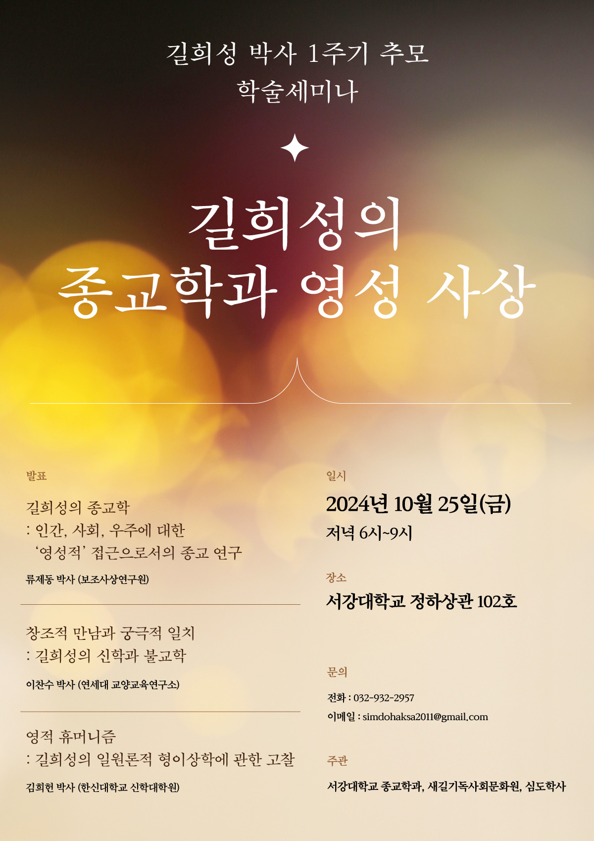 서강대 종교학과, 새길기독사회문화원, 심도학사가 공동 주관합니다.