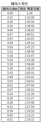 여러분의 하프마라톤 km당 페이스를 알기위해서는...