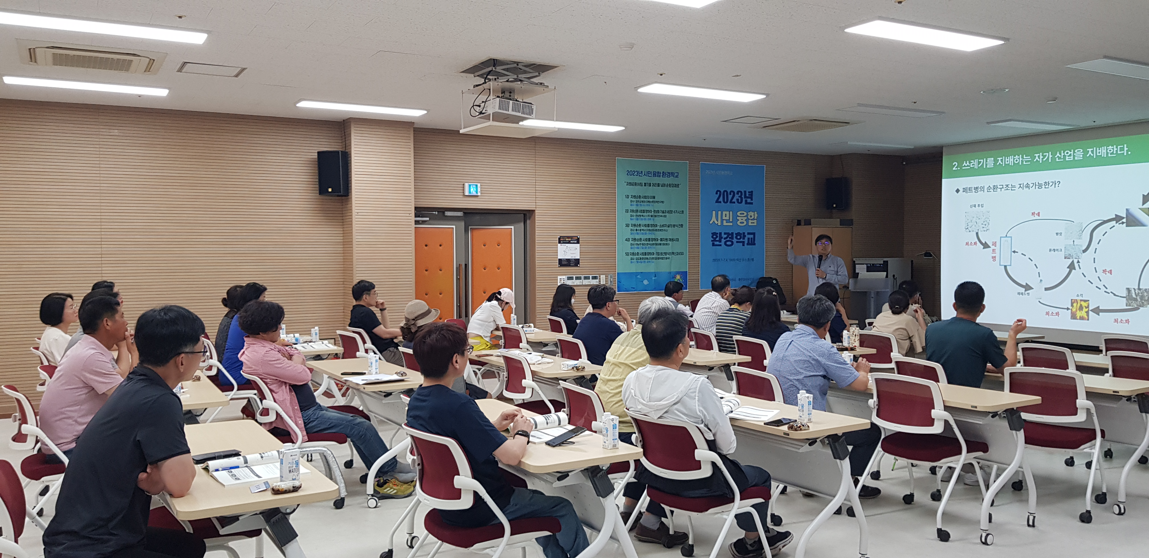 지난 6월 20일 저녁 7시 익산유스호스텔에서 좋은정치시민넷과 전북녹색환경지원센터가 공동 개설한 2023년 시민 융합 환경학교 3강이 있었다. 이번 강좌에는 자원순환사회경제연구소장인 홍수열 박사가 ‘지금 우리 곁의 쓰레기’라는 주제로 강의를 하였다. 홍 박사는 한국자원순환사회적협동조합 이사, 국가 탄소중립위원회 위원, 대통령 직속 정책기획위원회 자문위원을 지낸 바 있다.