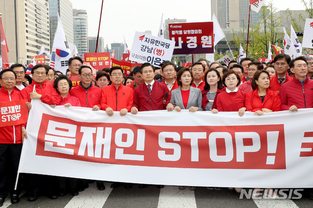 ▷ 본, 'Netizen Photo News' 는 가입 필요없이 손님께서도 연결에 넣어두고 날마다 보실 수 있습니다. (저작권 있음) '한국 네티즌본부' ○··· 【서울=뉴시스】김병문 수습기자 = 자유한국당 황교안 대표와 나경원 원내대표를 비롯한 의원들이 20일 오후 서울 종로구 세종문화회관 앞에서 열린 '문재인 STOP(멈춤), 국민이 심판합니다'에 참석해 지지자들과 함께 청와대 방향으로 행진을 하고 있다. 3Ddadazon@newsis.com">dadazon@newsis.com ☞ 원본글: 뉴시스| Click ○←닷컴가기. |