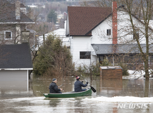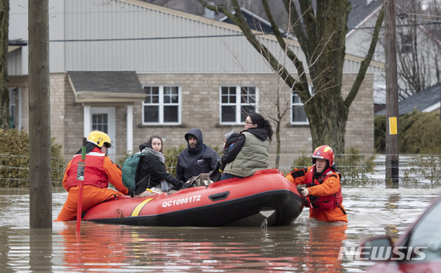 ▷ 본, 'Netizen Photo News' 는 가입 필요없이 손님께서도 연결에 넣어두고 날마다 보실 수 있습니다. (저작권 있음) '한국 네티즌본부' ○··· 【생트마리(캐나다)=AP/뉴시스】20일(현지시간) 캐나다 퀘벡주의 쇼디에르 강이 호우로 범람해 생트마리 주민들이 소방관들의 도움으로 대피하고 있고 카누를 타고 물 찬 도로를 건너고 있다. ☞ 원본글: 뉴시스| Click ○←닷컴가기. |