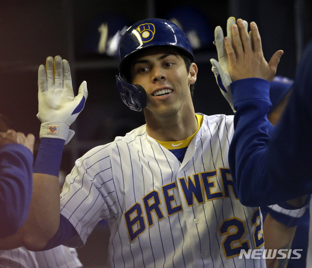 ▷ 본, 'Netizen Photo News' 는 가입 필요없이 손님께서도 연결에 넣어두고 날마다 보실 수 있습니다. (저작권 있음) '한국 네티즌본부' ○··· 【밀워키=AP/뉴시스】 밀워키 브루어스의 크리스티안 옐리치가 21일(한국시간) 미국 위스콘신주 밀워키의 밀러파크에서 열린 2019 메이저리그(MLB) LA 다저스와의 홈경기에서 6회말 솔로 홈런을 때려낸 후 동료들과 하이파이브를 나누고 있다. ☞ 원본글: 뉴시스| Click ○←닷컴가기. |