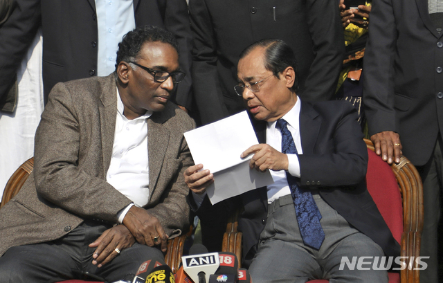 ▷ 본, 'Netizen Photo News' 는 가입 필요없이 손님께서도 연결에 넣어두고 날마다 보실 수 있습니다. (저작권 있음) '한국 네티즌본부' ○··· 란잔 고고이 인도 대법원장이 과거 여성 직원을 성희롱했다는 논란에 휩싸였다. 사진은 고고이 대법원장(오른쪽)이 지난 1월 뉴델리에서 기자회견을 여는 모습. ☞ 원본글: 뉴시스| Click ○←닷컴가기. |