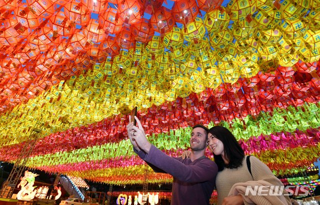 ▷ 본, 'Netizen Photo News' 는 가입 필요없이 손님께서도 연결에 넣어두고 날마다 보실 수 있습니다. (저작권 있음) '한국 네티즌본부' ○··· 부처님 오신 날(5월 12일)을 3주 가량 앞둔 20일 밤 부산 부산진구 삼광사를 찾은 다문화 부부가 환하게 불을 밝힌 연등 아래서 기념사진을 찍고 있다. 경내에 5만여 개의 연등을 설치한 삼광사는 오는 28일 연등문화축제 봉축 점등 대법회를 열고, 부처님 오신 날까지 연등 불을 밝힐 예정이다. ☞ 원본글: 뉴시스| Click ○←닷컴가기. |
