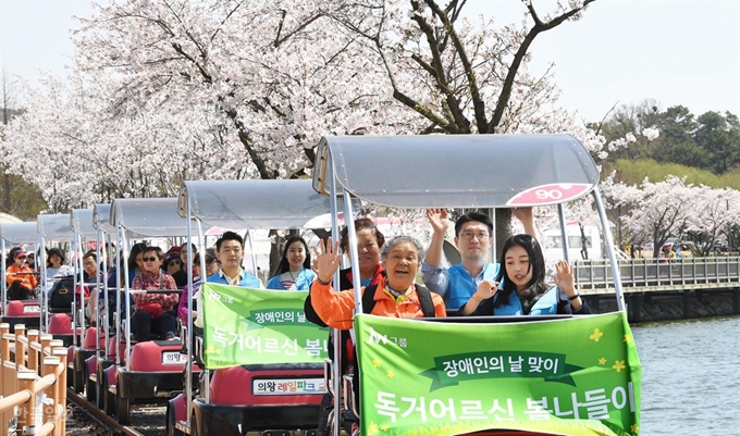 ▷ 본, 'Netizen Photo News' 는 가입 필요없이 손님께서도 연결에 넣어두고 날마다 보실 수 있습니다. (저작권 있음) '한국 네티즌본부' ○··· 17일 오후 경기도 의왕 의왕레일파크에서 JW그룹사 임직원으로 구성된 JW한마음봉사단원들이 장애인의 날을 앞두고 거동이 불편한 장애ㆍ독거노인들과 함께 레일바이크를 타고 봄을 만끽하고 있다.베우한 기자 ○··· jw그룹사 임직원으로 구성된 JW한마음봉사단원들과 우면종합사회복지관 장애.독거노인들이 17일 오후 경기 의완시 의왕레일파크에서 레일바이크을 타며 봄의 정취을 만끽하고 있다.배우한 기자 ☞ 원본글: 한국일보| Click ○←닷컴가기. |