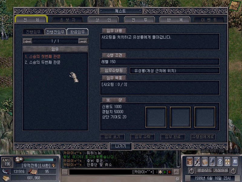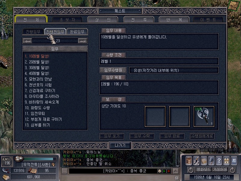 진행전 임무는 저렇습니다. (공통 퀘스트만 있을 뿐 기본 퀘가 없습니다.)