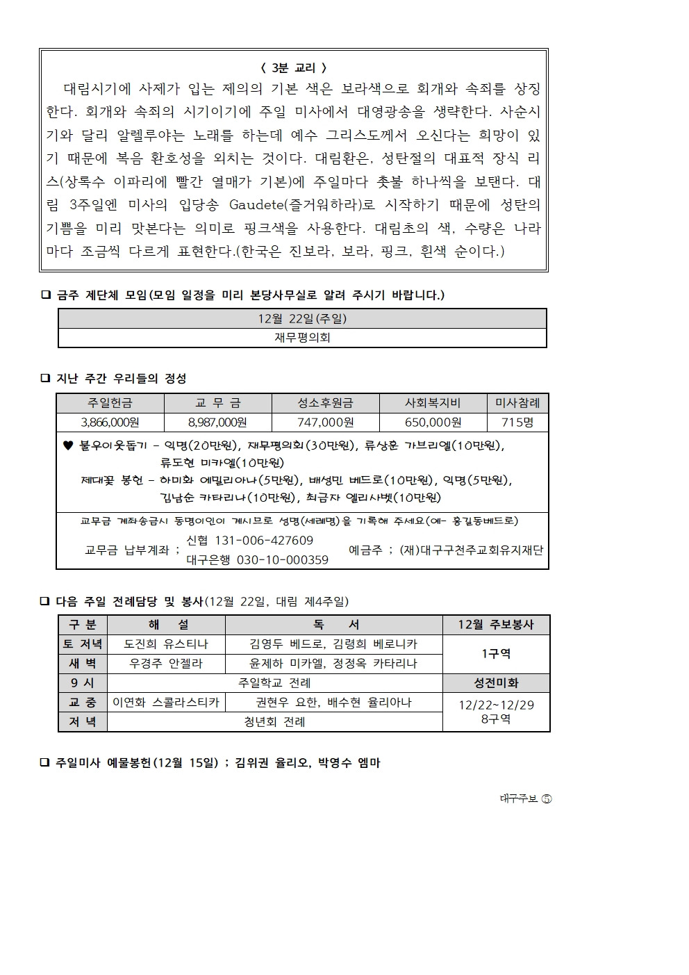 대림 제3주일 주보 작성자사무실지킴이|작성시간24.12.14|조회수129 목록 댓글 0 글자크기 작게가 글자크기 크게가 다음검색 현재 게시글 추가 기능 열기 북마크 공유하기 신고 센터로 신고 댓글 댓글 0 댓글쓰기 답글쓰기 댓글 리스트