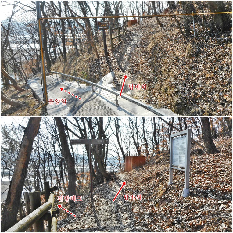 전망데크에서 되돌아 올라서면 불양암으로 내려가는 진입로와 합류하고~~~