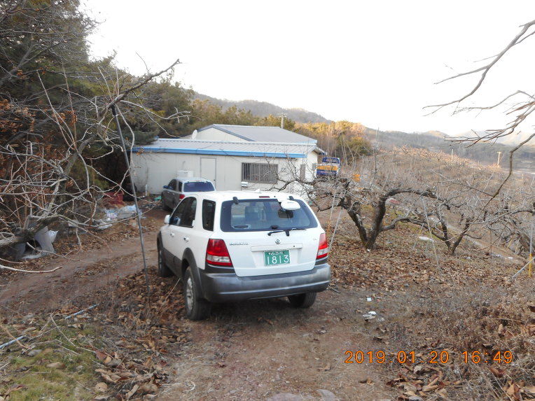 오르니, 엄청 규모가 큰 감나무 과수원의 농장 건물앞으로 인도를 해주네요. 차량을 주차하고 있노라니