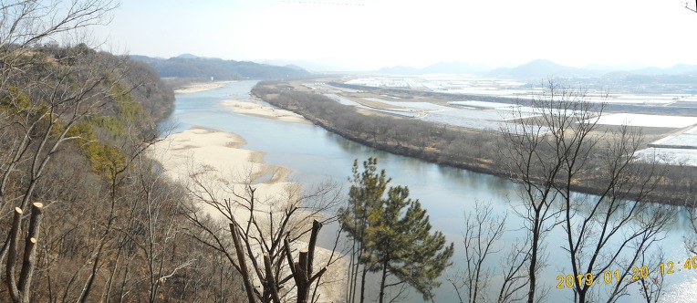 강 너머로는 넓은 들판이 펼쳐져 있어 전망이 매우 좋은 곳입니다 .