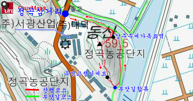 얼마 진행하지 않아 애마를 주차해둔 정곡삼거리옆 산행기점에 이르며, 25분여만에 동산 산행을 마치고