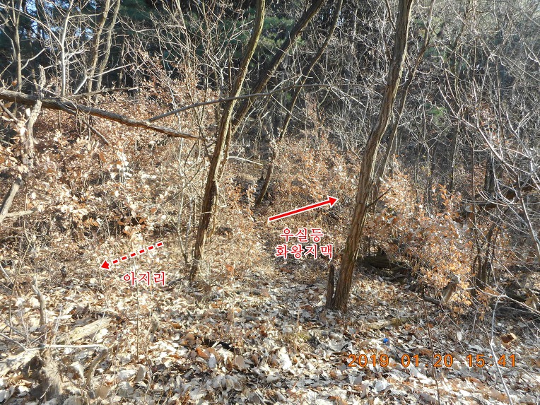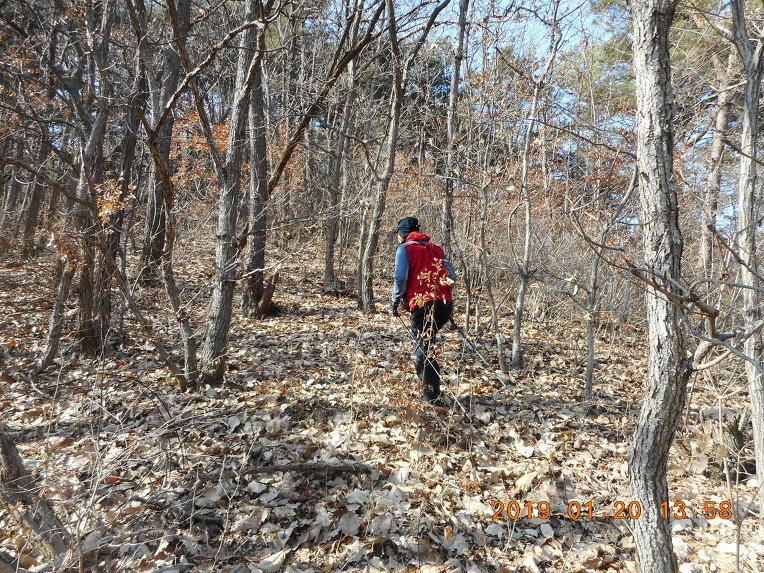 낙엽이 수북하게 덮혀 미끄럽고 희미한 길흔적을 따라 한차례 치고 오르면~~~