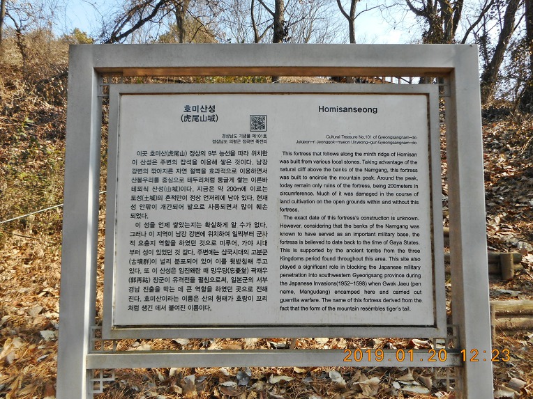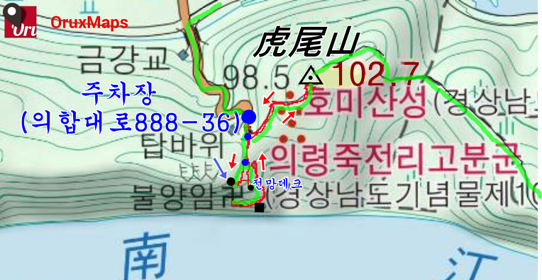 호미산(호미산성)정상 왕복-탑바위-불양암-주차장-차량이동-의령군 지정면 득소리 산228의3