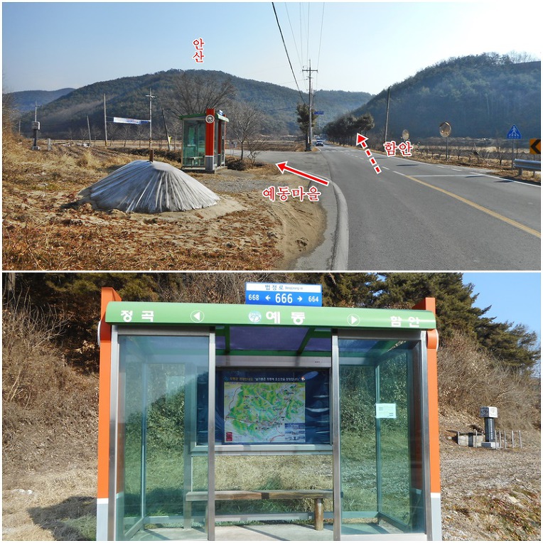 잠시후 예동마을 입구의 예동마을버스정류장이 있는 삼거리에 이르고 ~~~