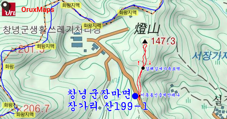 마저 답사하고 가기로 하고 '창녕군생활쓰레기처리장' 바로 옆에 있는 등산(147.3m)으로 이동합니다.