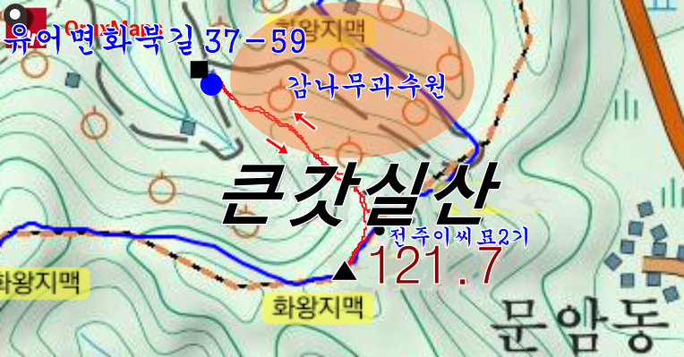-유어면 화북길 37의59 감나무농장-큰갓실산 정상 왕복-차량이동-창녕군 장마면 장가리 산