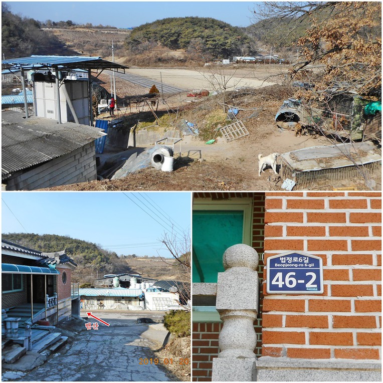 몇발짝 안가서 나오는 '법정로5길 85-19'농가앞 갈림길에서 좌측으로 꺽어들면, 담벼락이 끝나는 지점에서