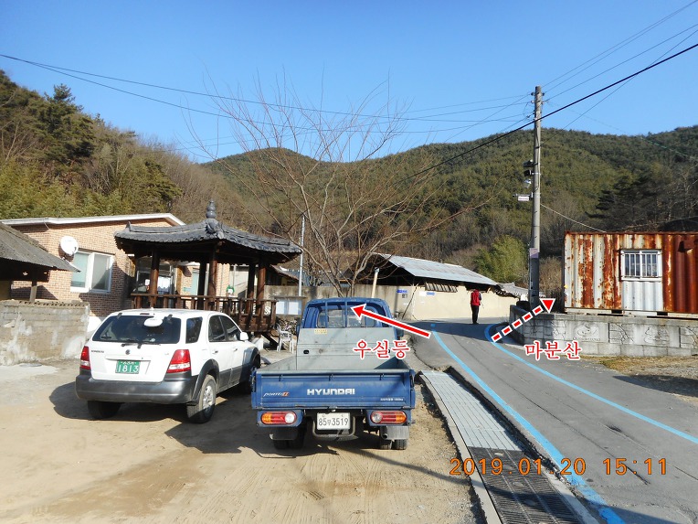 마을 주민 한분께 우실등으로 오르는 산길에 대해 문의한후, 가르쳐 주는대로 마을회관 우측길로 들어서며