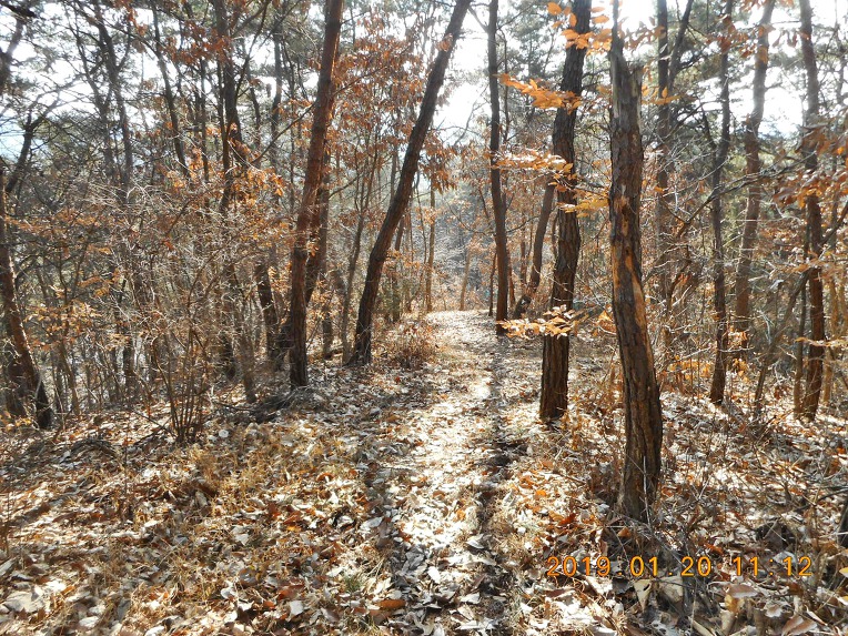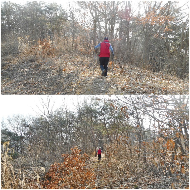 잠시후 야트막한 능선으로 올라서며 뚜렷한 능선길과 합류하게 되고, 좌측 능선길을 따라 진행하면~~~