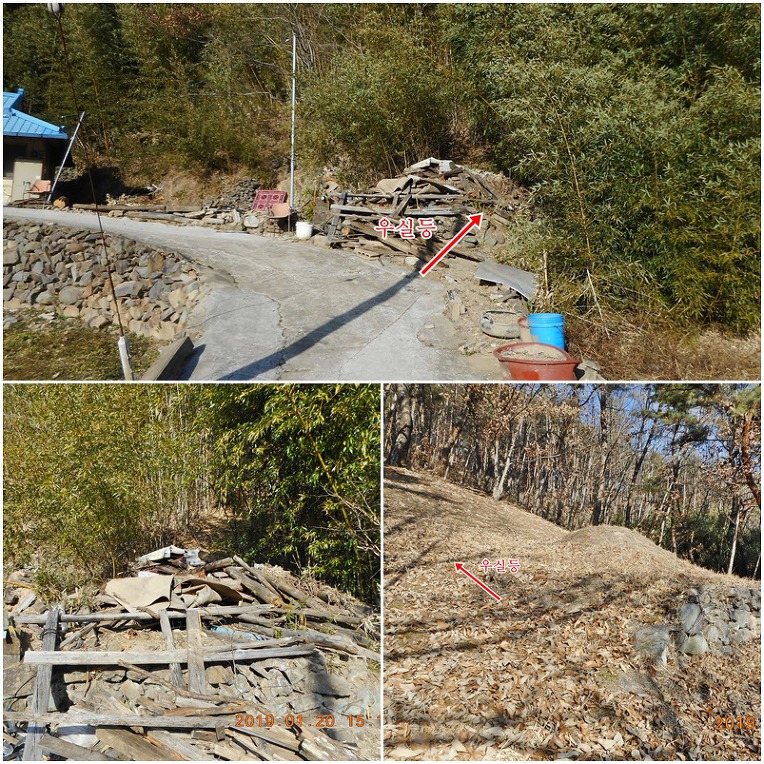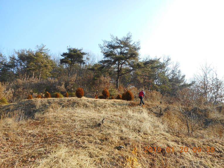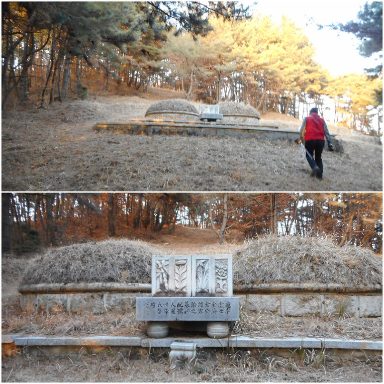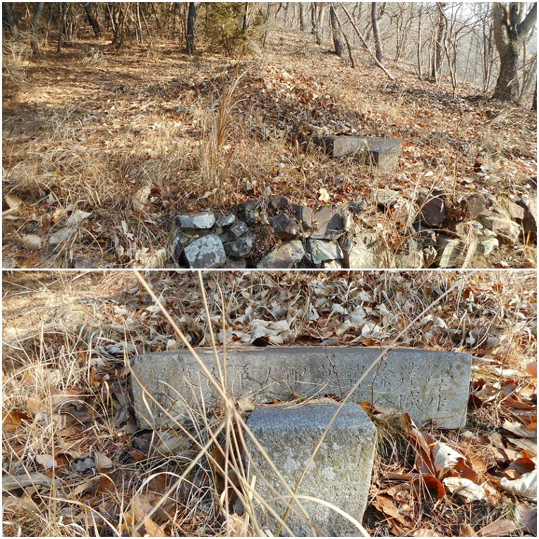 능선 끝자락으로 올라서자 말자 관리가 잘된 무명 무덤 2기 묘역이 나오며, 우측 멀지않은곳에 재실인듯한