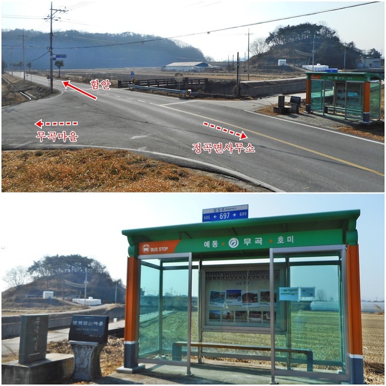 이어서 무곡마을 버스정류장이 있는 삼거리로 내려서며 실질적인 1차 산행을 마치게 됩니다. 차량을 주차해둔