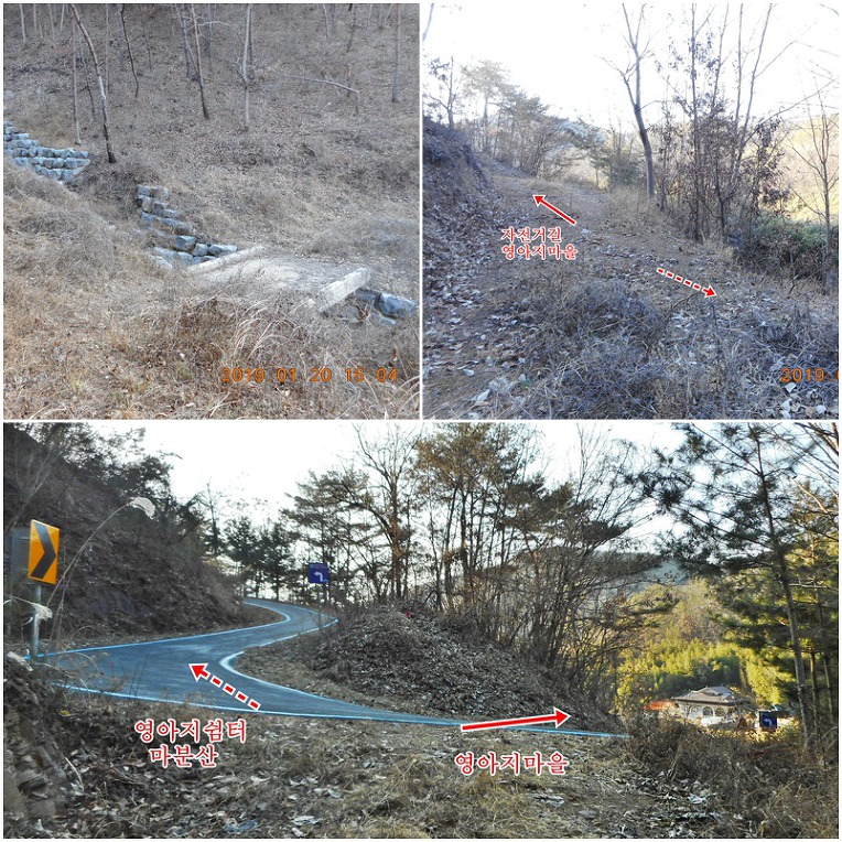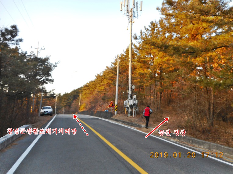 '창녕군생활쓰레기처리장' 정문 약 300m전 지점인 진입도로상의 고개마루 도롯가 좁은 공간에 애마를