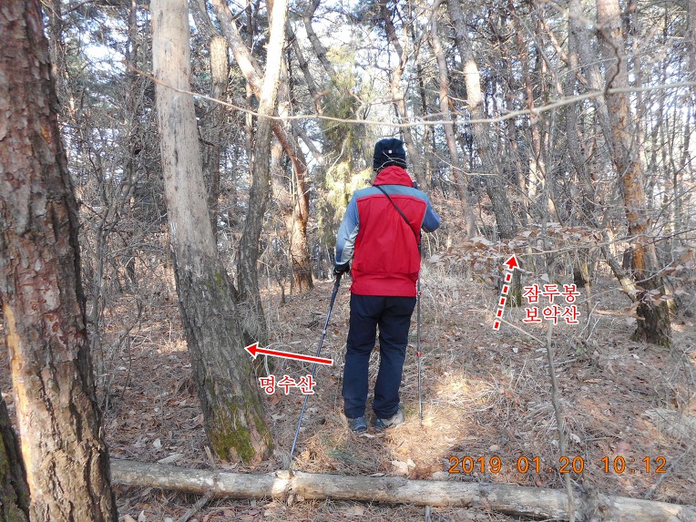 10여분만에 명수산 능선이 분기하는 분기점으로 올라섭니다.분기하는 능선길이 명확하지 않으므로 독도에