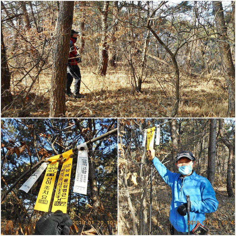 이곳 역시 병철아우의 표지기가 보이고 그 옆에는 종태아우의 표지기도 보이네요. 우리의 표지기도 걸고
